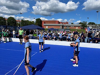 Roligt att spela cup ute mitt i sommaren, 3 mot 3 och målvakt med snabbt intensivt format.